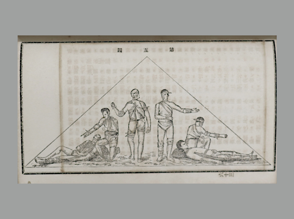 絵入り三角巾『普通救急新法』より