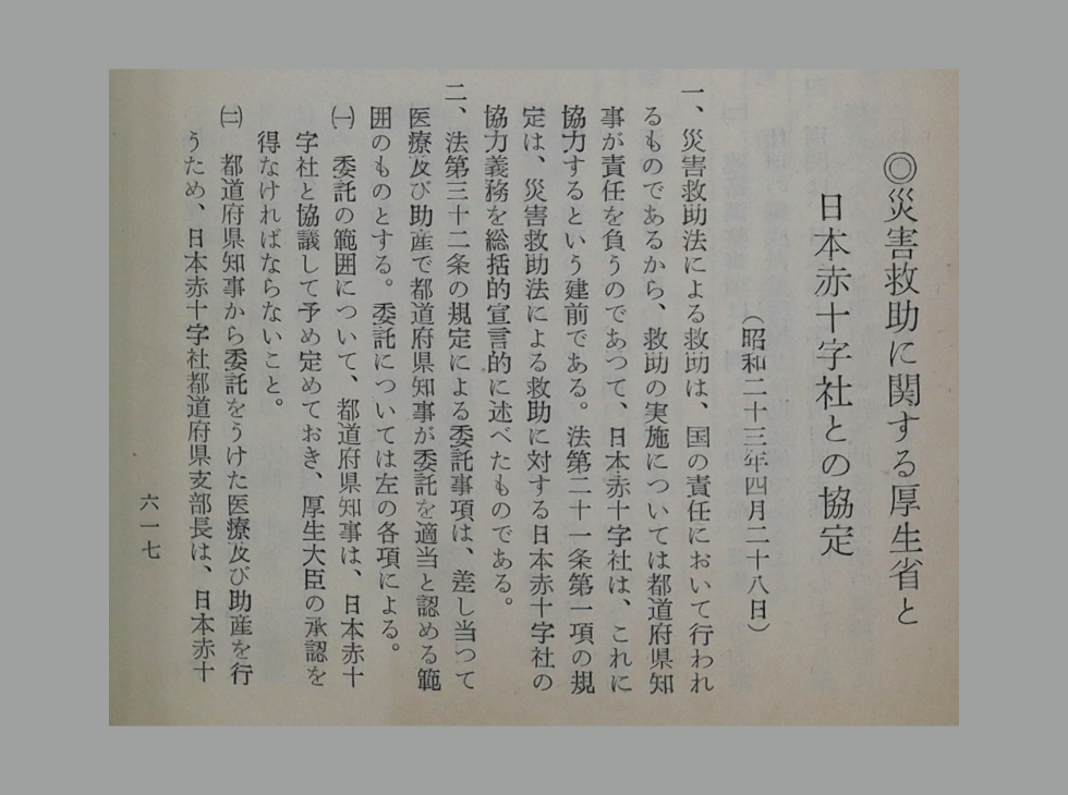 「災害救助に関する厚生省と日本赤十字社との協定」