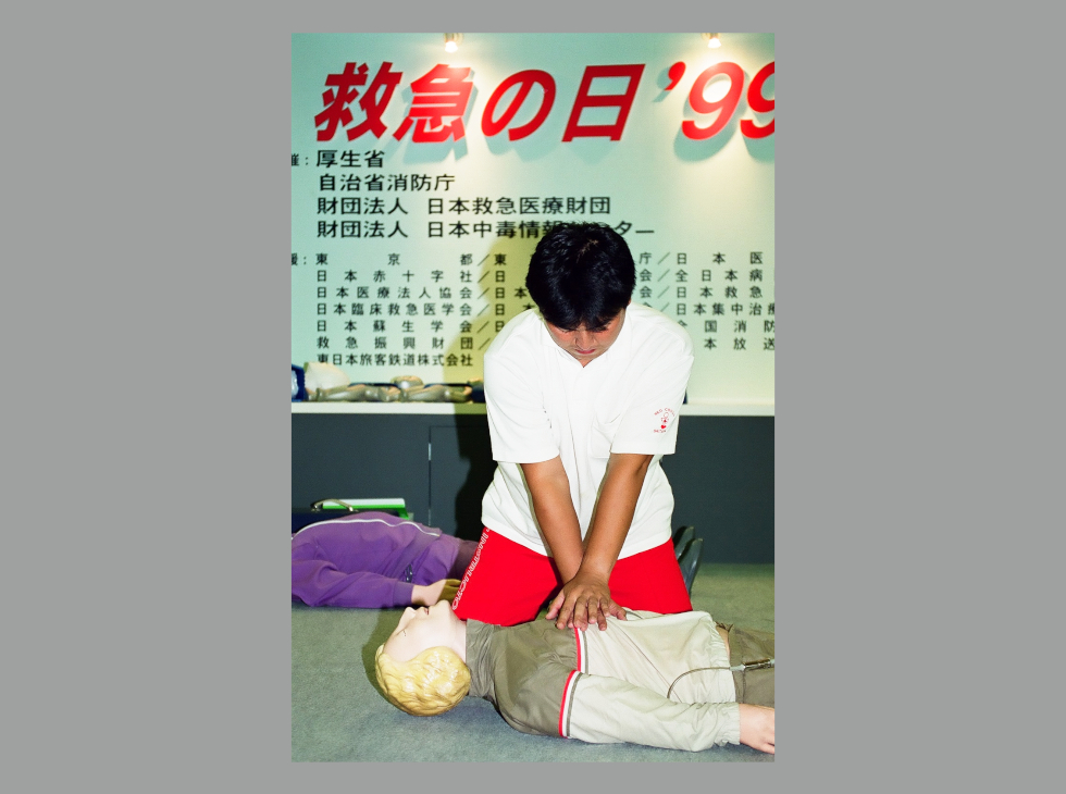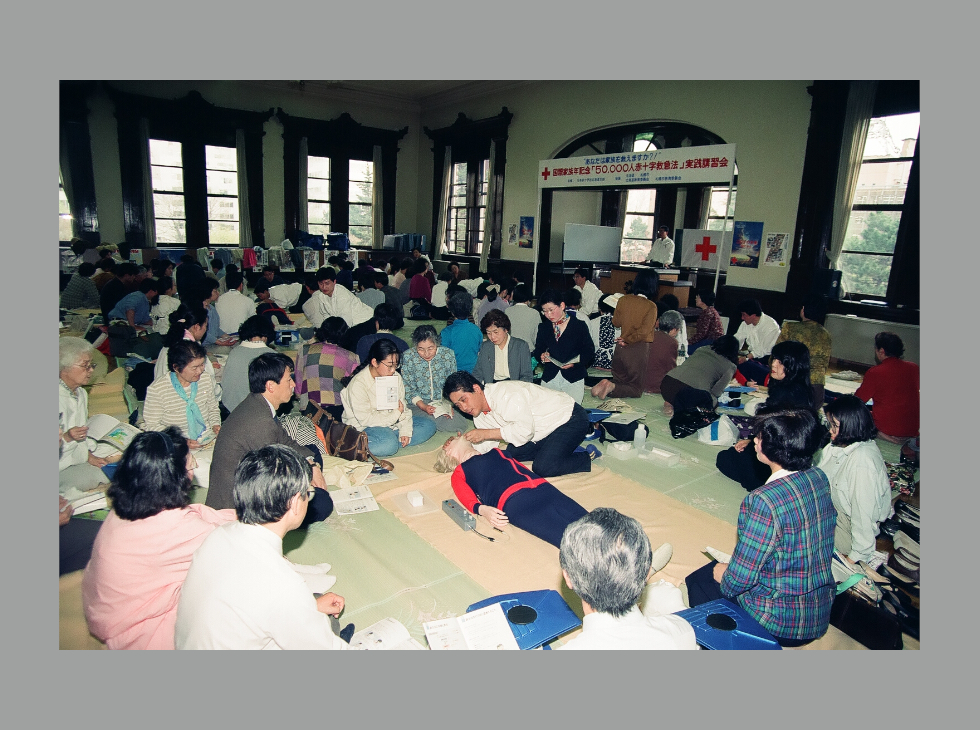 1983(昭和58)年、日本医師会は「救急蘇生法の指針」で、一般市民への心臓マッサージ普及推進を提言。この方針転換を受け、日本赤十字社は、1987(昭和62)年4月から全国で心臓マッサージを含む「蘇生法講習」を開始しました。